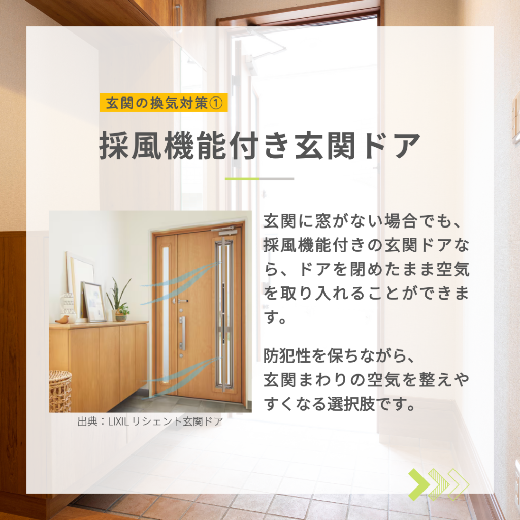 玄関に窓がない場合でも、採風機能付きの玄関ドアなら、ドアを閉めたまま空気を取り入れることができます。